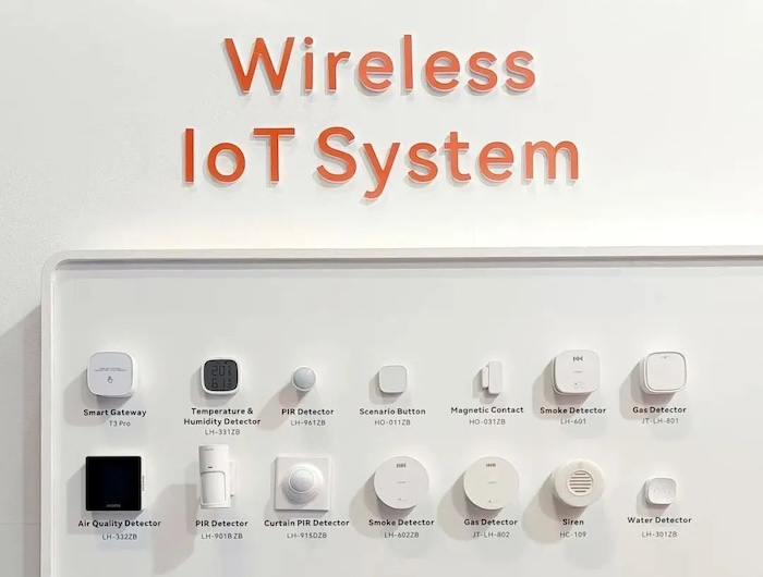 This series of products use Zigbee wireless communication mode, by T3 gateway unified management door magnetic, infrared, water, smoke sense, air sense, temperature and humidity, random paste, alarm number, multi-integrated environmental detector and other products, can realize rain prevention, fire prevention, explosion proof, anti-theft, constant temperature and other modes, so that your family sense of science and technology and sense of security coexist.