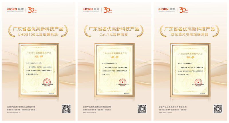 Recently, Shenzhen HaoEn Security Technology Co., Ltd. (hereinafter referred to as “HaoEn”), a subsidiary of Zhong'anke, has been receiving frequent good news. In the “2025 Second Batch of Guangdong Province's Top High-Tech Products Proposed for Approval” list released by the Guangdong High-Tech Enterprise Association, HaoEn's “LHD8100 Wireless Alarm System,” “4G Cat.1 Combustible Gas Detector,” and “Dual-Light Source Photoelectric Smoke Detector” series products were successfully selected. This highlights the company's continuous technological innovation and product leadership in the security field.