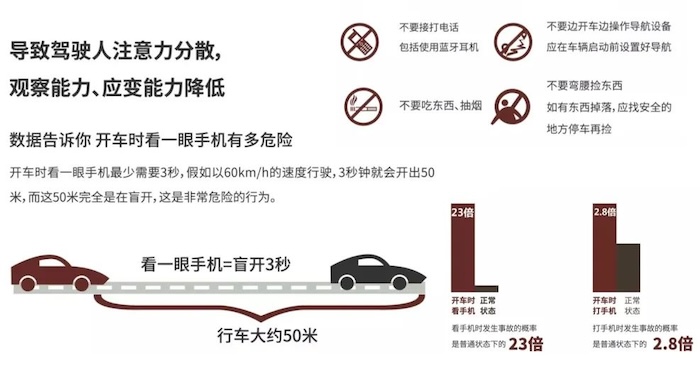 In the process of driving, we should take the overall situation into consideration, and not be distracted by other things. Keep our eyes in anything or direction for more than 2 seconds, otherwise paying attention to something for a long time will make us and others in high danger.