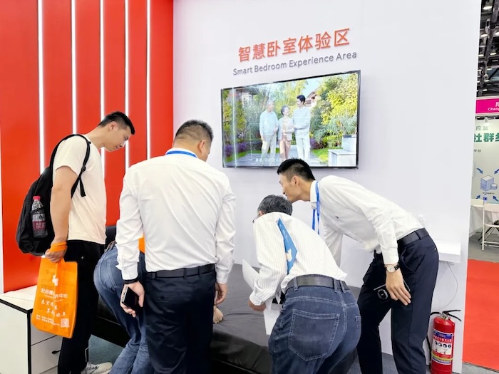 本次展會(huì),豪恩打造了智慧臥室體驗(yàn)區(qū)。來訪嘉賓不僅可以現(xiàn)場體驗(yàn)健康監(jiān)護(hù)(上臂式電子血壓計(jì)、睡眠監(jiān)護(hù)等)產(chǎn)品,體驗(yàn)到足不出戶就能進(jìn)行健康監(jiān)測的便利,也能在自由出入間,享受安全監(jiān)護(hù)(緊急拉繩按鈕、人體跌倒探測器、人體存在探測器、煙霧報(bào)警器等)產(chǎn)品帶來的安全感。