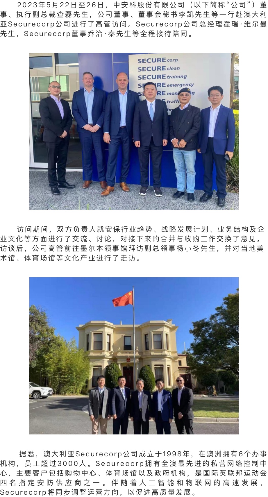 中安科股份有限公司高管赴澳大利亞Securecorp公司參觀訪問(wèn)