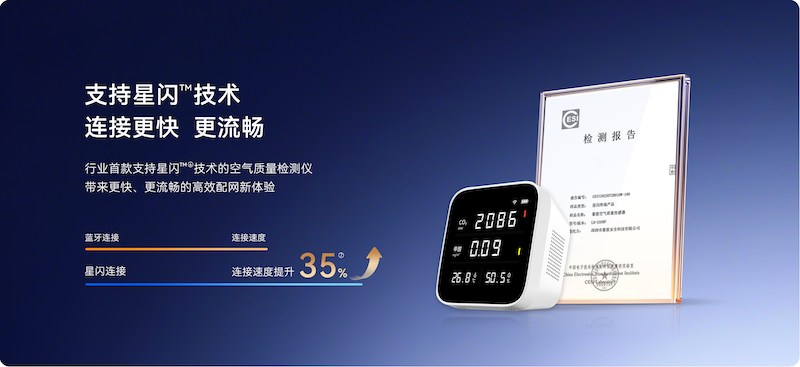 作為業(yè)內(nèi)首款支持星閃連接技術(shù)的空氣質(zhì)量檢測儀,產(chǎn)品在連接速度、穩(wěn)定性與功耗方面實現(xiàn)跨越式提升,為用戶帶來更流暢配網(wǎng)體驗。