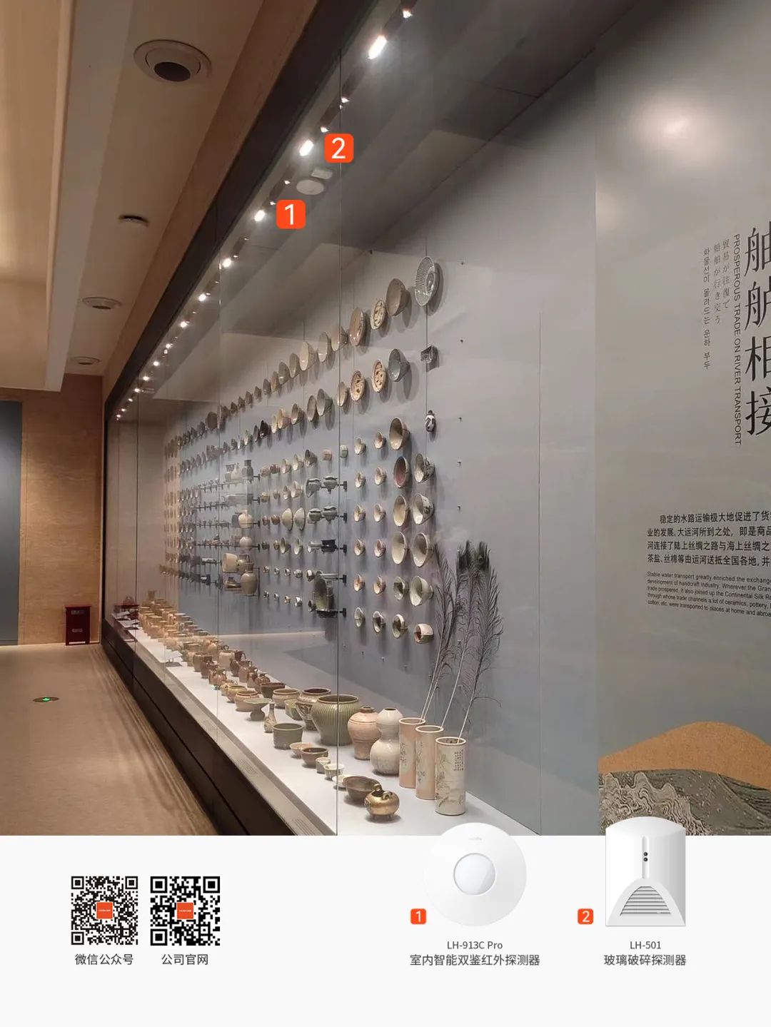 而在每個(gè)展柜內(nèi)部,豪恩也安裝了玻璃破碎探測(cè)器,及時(shí)感知對(duì)展柜的惡意敲擊、爆破以及高低溫攻擊等破壞行為,為珍貴的文物筑起第二道保護(hù)墻。