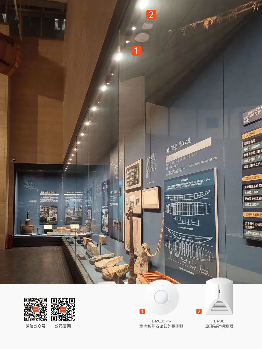 博物館展柜區(qū)域安裝探測(cè)器案例圖