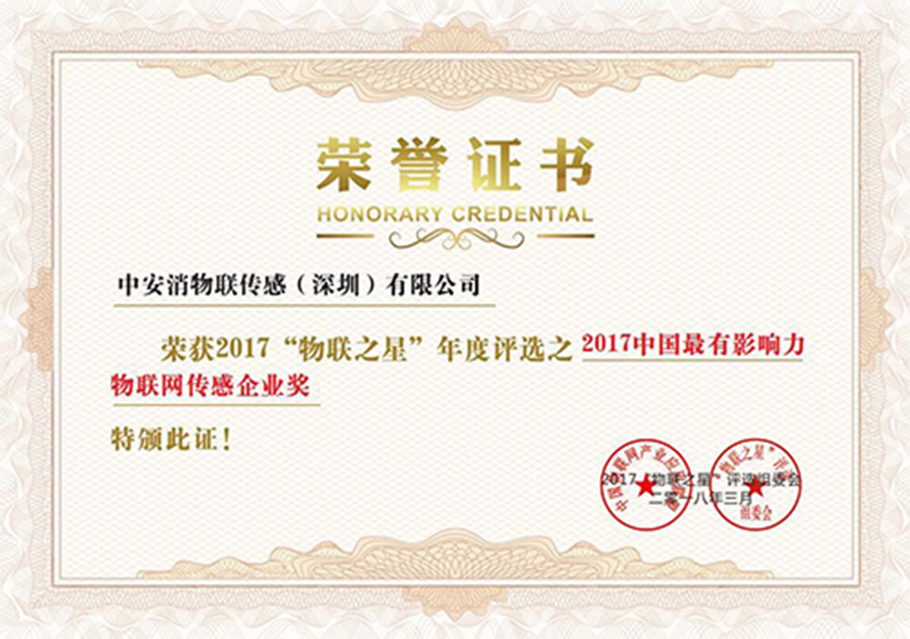 “物聯(lián)之星”因其評選公正性,具有較強的行業(yè)影響力,備受外界矚目,更被譽為中國物聯(lián)網(wǎng)的奧斯卡。經(jīng)過近兩個月物聯(lián)網(wǎng)領域專家評委全方位的評估,綜合企業(yè)技術、產(chǎn)品實力、行業(yè)影響力、企業(yè)規(guī)模與發(fā)展速度、未來成長潛力等指標,中安消物聯(lián)最終在332家企業(yè)中脫穎而出,獲評2017中國最有影響力物聯(lián)網(wǎng)傳感企業(yè)獎。