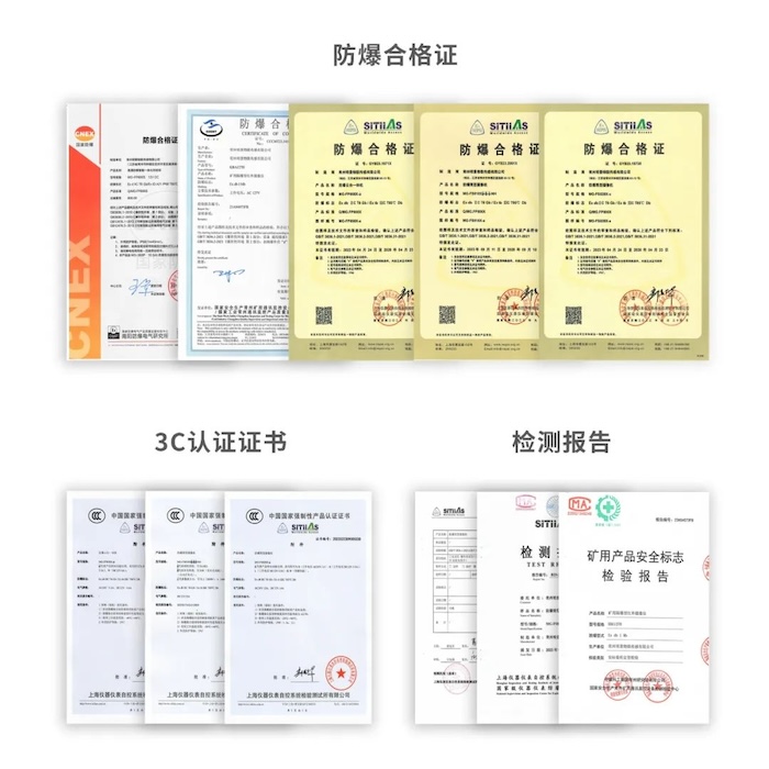 明景智慧能源防爆產(chǎn)品系列均已通過多項(xiàng)防爆檢測(cè)認(rèn)證,并獲得相應(yīng)的防爆合格證書、煤安證、本安證等。適用于含有煤塵、甲烷爆炸混合物環(huán)境場(chǎng)所,如:煤礦井下、礦山、隧道、石油、天然氣、地鐵等。